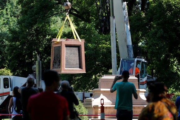 The commissioners who oversee Tower Grove Park recently voted to remove the statue which was loaded onto a truck, but it wasn’t clear where it would be taken.