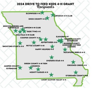 JEFFERSON CITY, MO – Twenty-four Missouri 4-H clubs have been awarded 2024 Drive to Feed Kids grants through the Missouri Farmers Care Foundation. This is the fourth year the Foundation has provided grants for Missouri 4-H clubs to fund local food security efforts through 4-H Feeding Missouri.