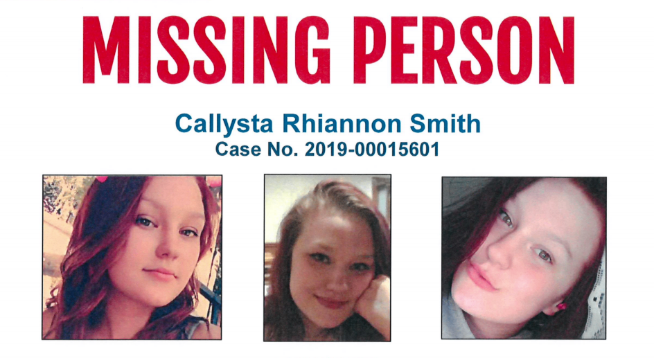 15-year-old Callysta Smith was last seen on March 04, 2019 at approximately 8:30 p.m. Smith is a white female approximately 5 feet 8 inches tall with red/brown hair and green eyes. She was last seen wearing a red Pittsburg State University hoodie, sweatpants, with black and white checkered Vans shoes. Smith is Type 1 Diabetic and left her residence without her medication.