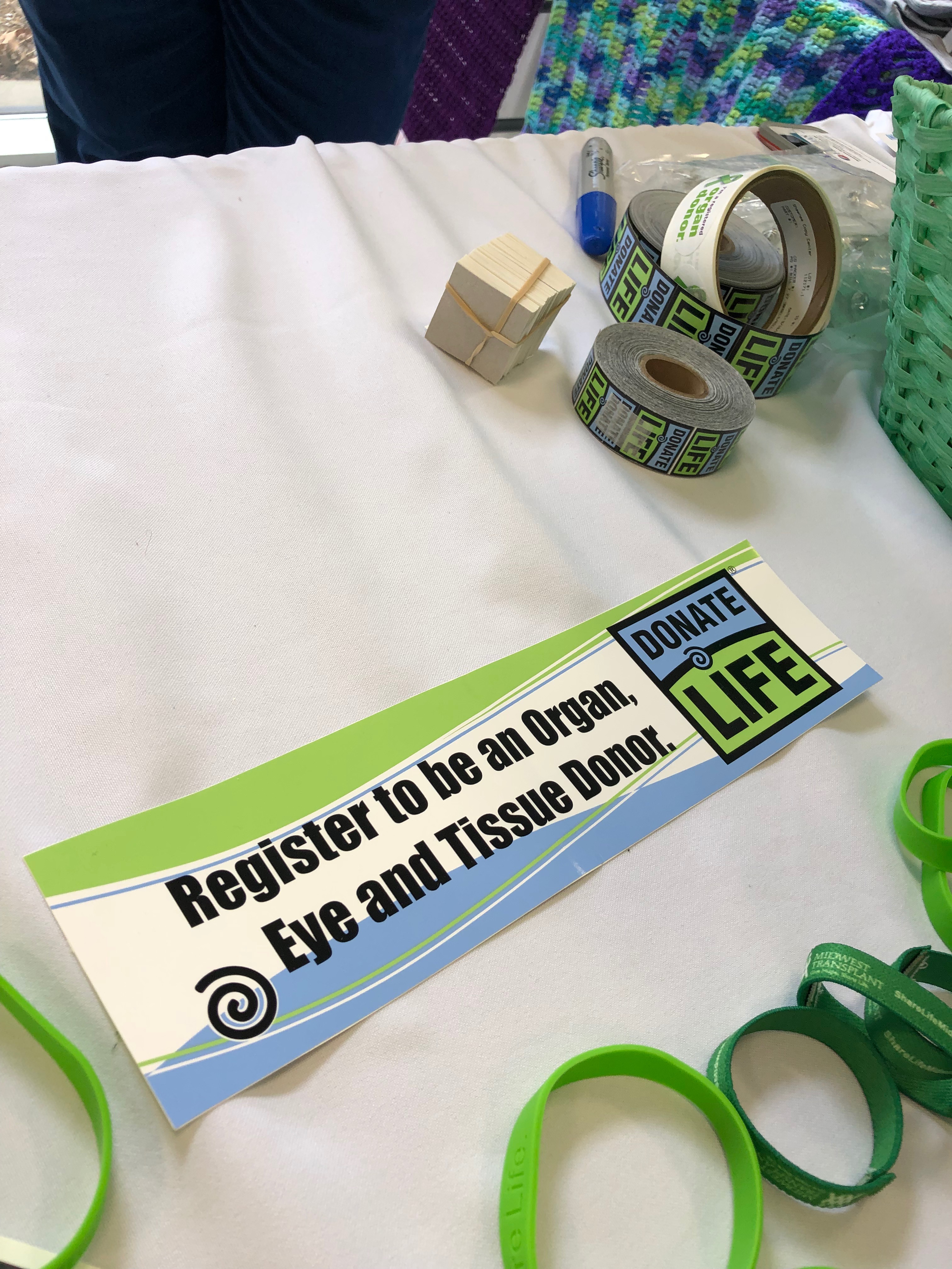 From now until 2 today (Friday 04/12) you can stop by Freeman, where all the employees are wearing Blue and green, and sign-up or pick up information about being a life saving Organ Donor and some cool blue and green gifts too.