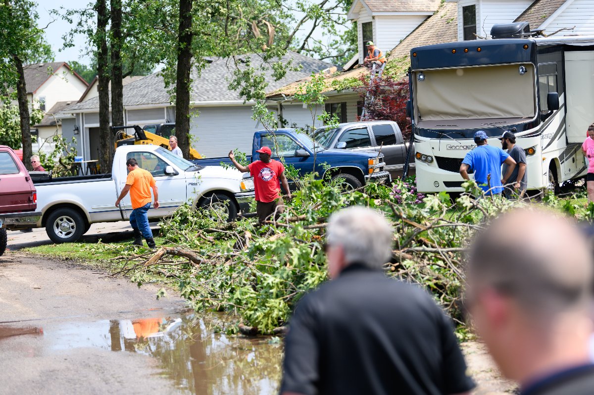 On May 21, Governor Parson declared a state of emergency in Missouri in response to continuing severe weather and forecasts for tornadoes and worsening flooding due to prolonged soil inundation throughout the state. On May 23, the Governor surveyed overnight tornado damage of Jefferson City, Eldon, and Carl Junction and thanked emergency personnel for their severe weather response. On May 27, Governor Parson activated the Missouri National Guard to assist with flood fighting efforts throughout the state.