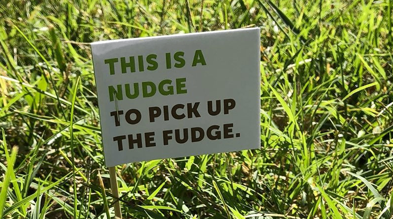 The flags contain messages such as, ``Is this your turd? `Cuz that's absurd'' and ``This is a nudge to pick up the fudge.''