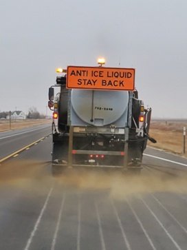 When KDOT crews treat highways for ice, especially when it is the coldest, motorists might notice darker trails on the pavement instead of the usual white trails left by brine.