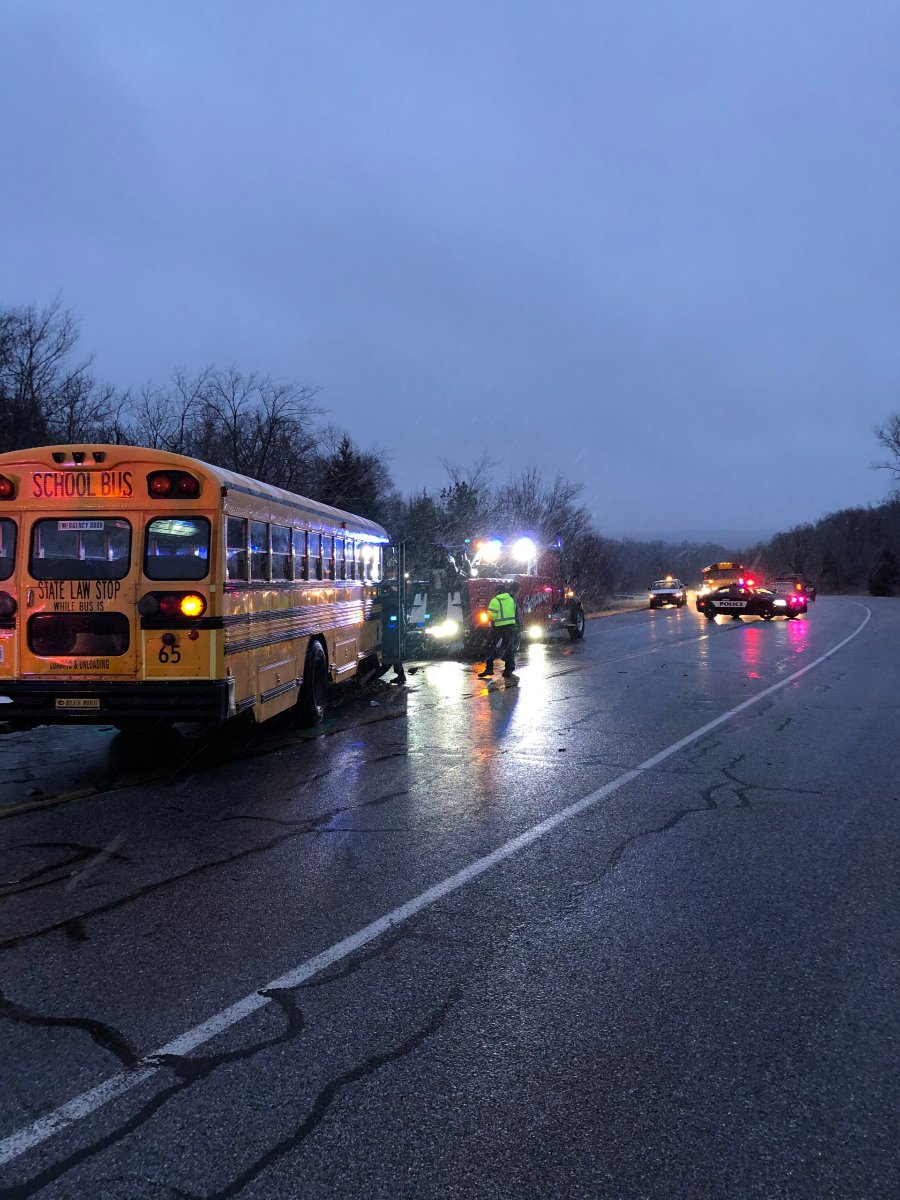 As officers came up the hill towards I-44 several miles later they found an accident. The Van had lost control and hit a Joplin School bus.