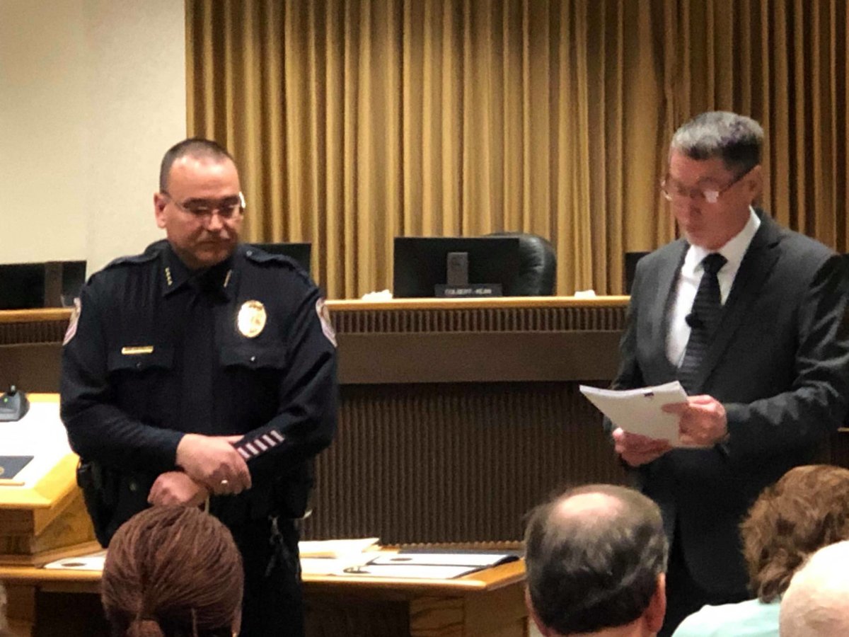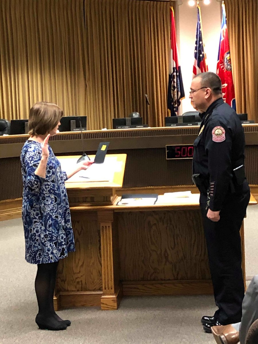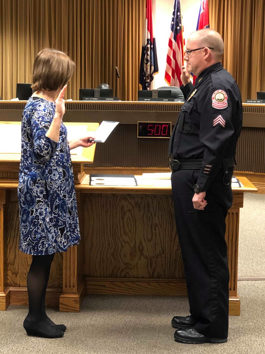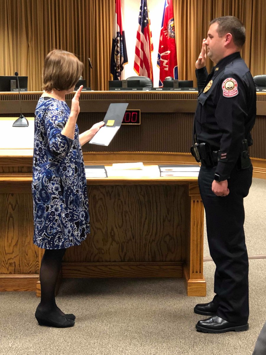 officers during a Joplin Police Department Promotions And Swearing-In Ceremony at last nights Joplin city council meeting.