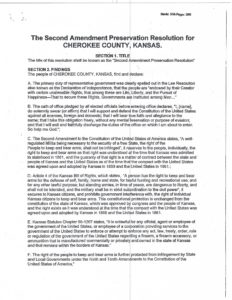 The five-page document, assembled by county leaders, protects the right to keep and bear arms.