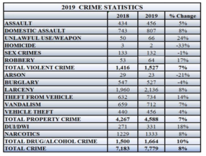 The total report revealed crime to be up by 8 percent but two categories - homicides and arson cases were down.