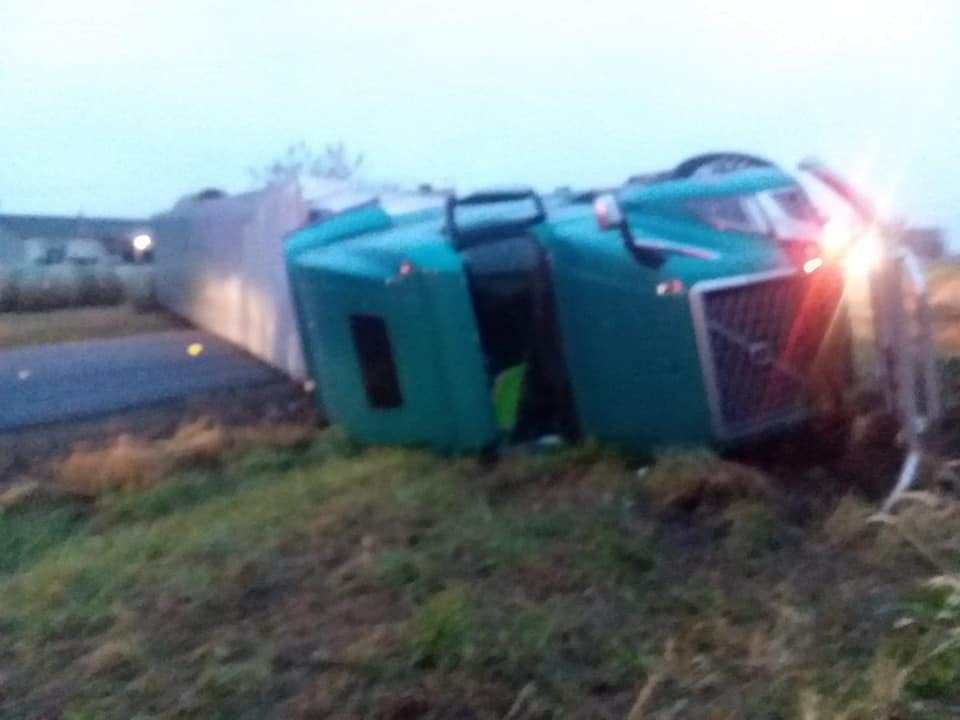 Semi-truck rollover blocked an entire road this morning near MO 37