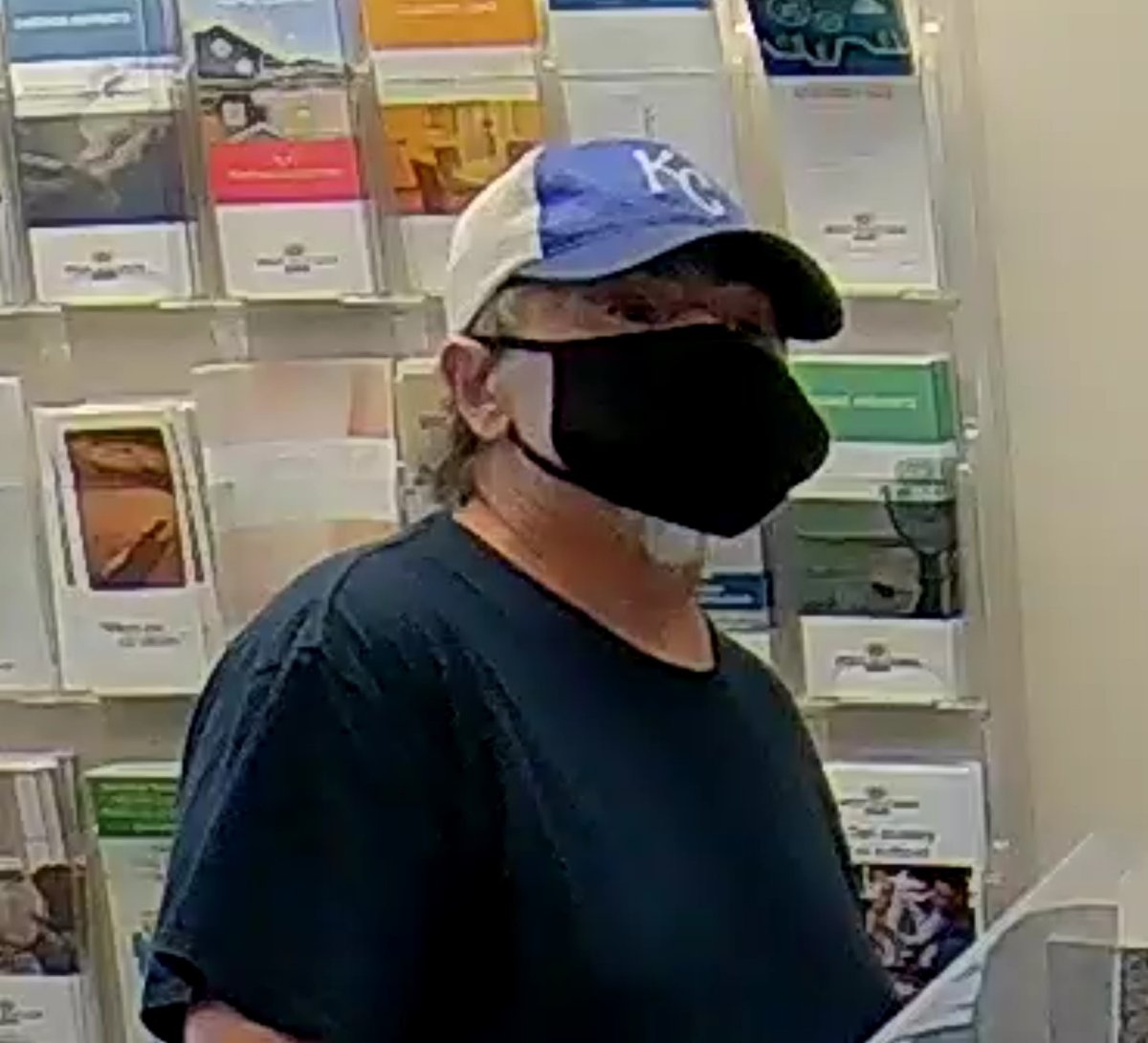 The Miami County Sheriff's Office said that a white male, approximately 5’ 5”, wearing a black facemask, blue and white KC hat, dark-colored shirt, and blue jeans robbed a bank in Louisberg around 10 am Monday. The suspect fled the scene in a white 4 door passenger car.