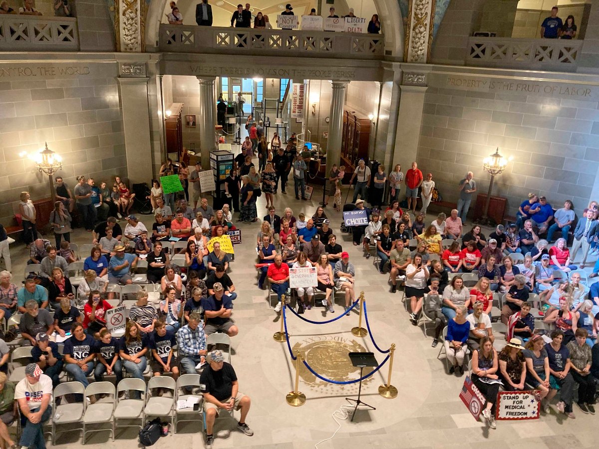 (AP) Missouri lawmakers, business lobbyists and protesters are railing against President Joe Biden's planned vaccine mandate for large businesses. Influential industry groups on Wednesday told lawmakers that the requirement could be catastrophic to businesses as protesters rallied against the mandate in the Capitol rotunda. Business lobbyists say the mandate likely won't mean many more people get vaccinated in Missouri. They say the requirement will instead push workers to smaller businesses without vaccine mandates, straining the already strained labor force. House Republican leaders have sent a letter to Biden calling the plan “blatantly unconstitutional.”