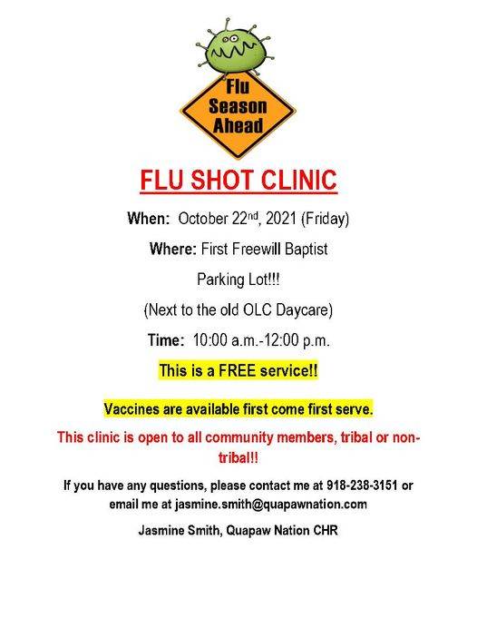 The Quapaw Nation will hold a flu shot clinic coming up later in October.