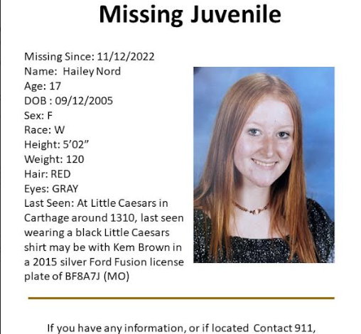 If you have information, or if located, contact 911 or call the Carthage Police at (417) 237-7200 or (417) 359-9100.