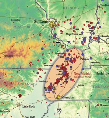 The biggest earthquakes ever recorded in what is now the continental United States occurred in that area in 1811-1812.