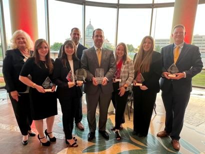 The NEO Love's Cup team competed against Oklahoma's regional universities, which include six four-year colleges. They brought home a total of seven trophies and $16,000. Kaitlyn Stephens finished first in the Paulsen Interview, winning a $5,000 scholarship.