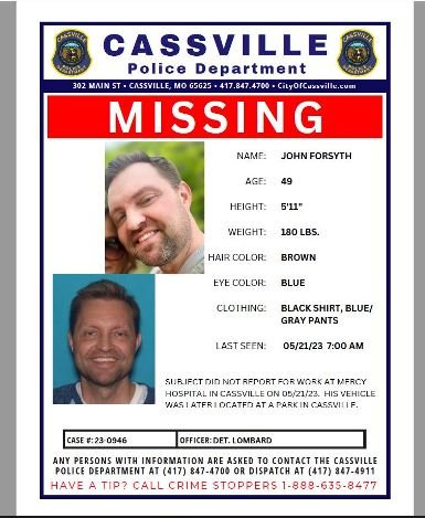 Anyone with information is asked to contact Barry County E911 at (417) 847-3121 or the Cassville Police.