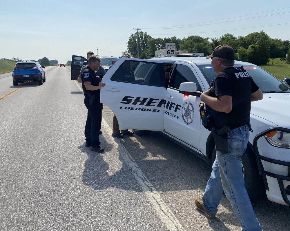 Law enforcement from the Cherokee County Sheriff's Office, Galena Police Department, Baxter Springs Police Department and Kansas Highway Patrol established a perimeter and searched a wooded area south of the highway, where they located and apprehended Bebee.