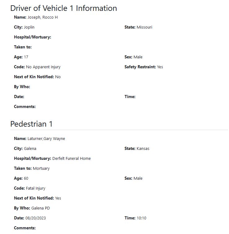 Joplin teen identified as driver involved in fatal pedestrian collision in Galena
