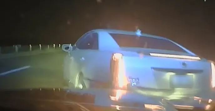 Authorities said the trooper had been in pursuit of two vehicles traveling faster than 100 mph. One of the vehicles being chased was a white, four-door sedan. Unfortunately, the trooper in pursuit misidentified a bystander's vehicle as the suspect's car and executed the PIT maneuver, crashing into the wrong car and bringing it to a halt.Dashcam footage of the pursuit shows the trooper's car traveling at high speed on I-40 in pursuit of the suspects. The trooper passes several cars before his vehicle approaches the white sedan, which flashes its brake lights as the trooper draws near.