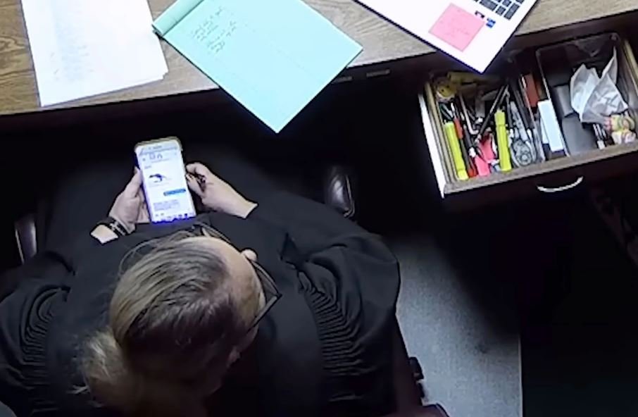 Security video published by The Oklahoman newspaper showed Soderstrom texting or messaging for minutes at a time during jury selection, opening statements and testimony during the trial in Chandler, about 45 miles (72 kilometers) northeast of Oklahoma City.