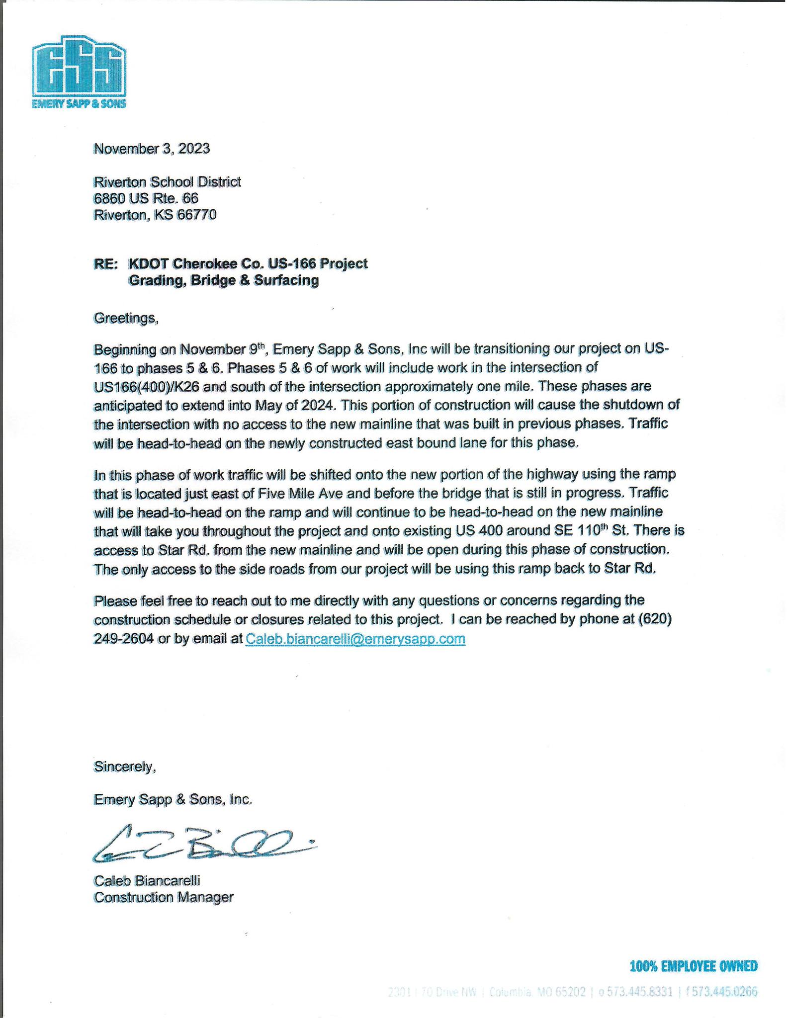 KDOT is in the process of expanding U.S. 166/400 to four lanes and constructing two interchanges from U.S. 400 southeast to the Kansas-Missouri state line. Check KDOT’s updated traveler information website, www.kandrive.org, for more highway condition and construction details. Persons with questions may contact Doug Pulliam at KDOT-Pittsburg, (620) 308-7613 or Public Affairs Manager Priscilla Petersen, (620) 902-6433.