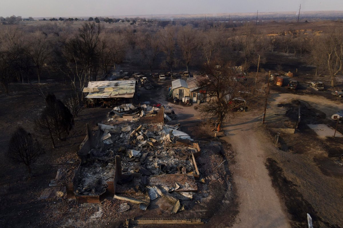 Gray skies loomed over huge scars of blackened earth in a rural area dotted with scrub brush, ranchland, rocky canyons and oil rigs. Firefighter Lee Jones was helping douse the smoldering wreckage of homes in Stinnett to keep them from reigniting when the weather starts turning Friday and continues into the weekend.