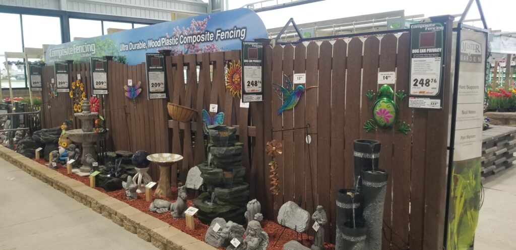 Not your average hardware store, the new Menards building, which sits at 3317 S Geneva Ave, has several sections for each Do-It-Yourself-er—two Building Materials and Millwork sections (lumber, roofing materials, siding, shed, deck and fencing materials), Cabinets and Appliances, Paint, Pet and Wildlife, Grocery, Hardware, Plumbing and Housewares, Flooring, Plumbing, Electrical, Automotive, Shelving as well as a pickup area and large indoor/outdoor Garden Center.
