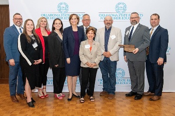 The OSRHE business partnership award is designed to highlight successful partnerships between higher education institutions, businesses, and the community to further cultivate the higher learning environment through State Regents economic development grants.