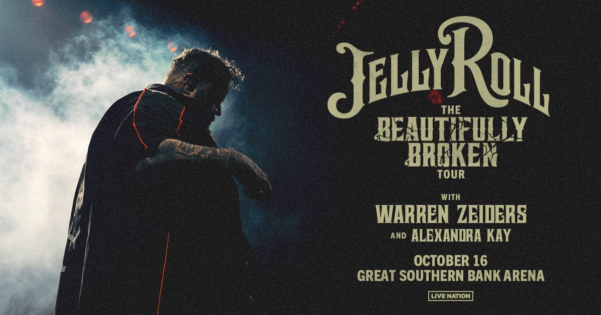 JUST ANNOUNCED Jelly Roll is bringing his Beautifully Broken Tour to Great Southern Bank Arena on October 16th with special guests Warren Zeiders & @Alexandra Kay!