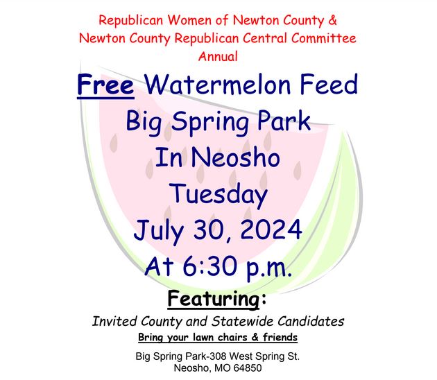 The Free Watermelon Feed is open to all Republicans. Ice cold watermelon and bottled water will be provided—free of charge. All you need to bring is your lawn chairs, appetite, and friends & neighbors.