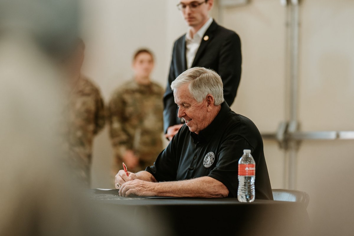 Missouri Governor Mike Parson made a stop to Pineville Wednesday afternoon to ceremonially sign HB 2134/1956, after he officially signed it in mid-July.