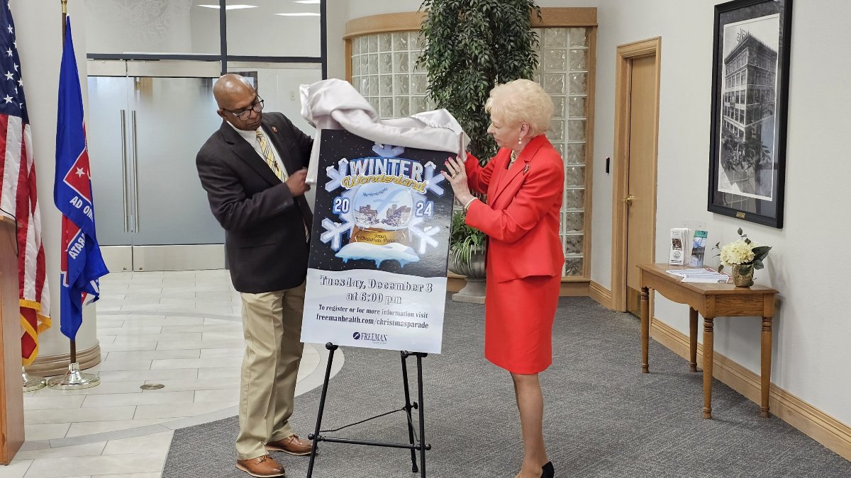 “I'm also honored today to announce the Grand Marshal of the event. And she happens to be standing with me today. Paula Baker will serve as the Grand Marshal for this year's annual Christmas parade. Paula has been President and CEO of Freeman health system for 13 years.”