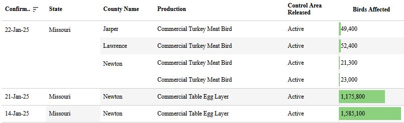 More cases of the highly pathogenic avian influenza (HPAI) has been detected this week in southwest Missouri.