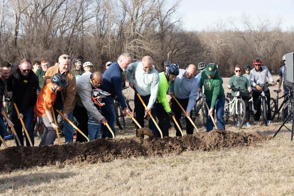 Joplin City officials, members from the Parks and Recreation Board, and the Convention and Visitors Board joined City staff, community leaders, and the Joplin Area Chamber of Commerce as the first dirt was turned to begin construction on the biking park Monday afternoon.
