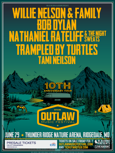 The Outlaw Music Festival is coming to the Thunder Ridge Nature Arena in Ridgedale, Missouri on Sunday, June 29th.