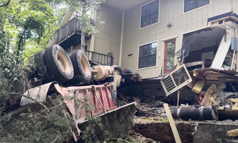 A dump truck flipped, rolled, and wrecked into a house in McDonald County Saturday afternoon.