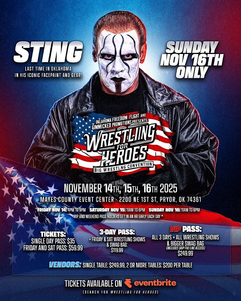 Organized by Oklahoma Freedom Flight and Gimmicked Promotions, the three-day extravaganza kicks off Friday, November 14, at 2 p.m. and wraps up Sunday, November 16, at 6:30 p.m. Doors open at 1 p.m. each day, promising non-stop action at the venue located at 2200 Northeast 1st Street in Pryor.