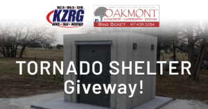 Starting 9/5/2022, KZRG will open entering for the KZRG Tornado Shelter Contest! To Enter, Listeners must enter Name, Address, phone and email at NewsTalk KZRG. Beginning September 19th, KZRG will begin qualifying contestants for the drawing to win an above ground tornado shelter from Oakmont Construction. To qualify: KZRG will announce the name of a person who has entered – Monday through Friday at the following times: 7:35am, 12:35pm, and 4:35pm. If name is called: listener has 5 minutes to call 417.782.1310 to qualify for the drawing. The qualifying ends on 11/2/2022 at 4:35pm. The Drawing will occur on 11/3/2022 at 7:10am on the KZRG Morning News Watch.